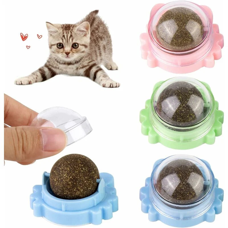 Great that these catnip balls have still arrived because the part on the wall can then stick and I just take out the old catnip ball that has become too small and put in a new ball, great that it goes like this, thank you